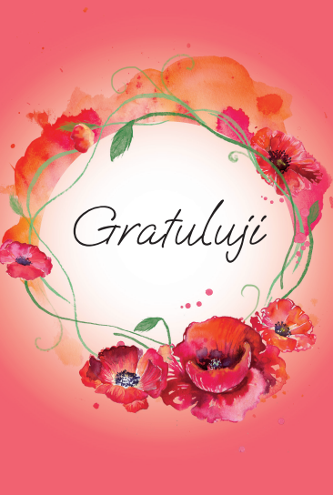 Originální blahopřání k svátku, narozeninám či k obyčejnému dni, plnému radosti s textem na titulce: Gratuluji - s motivem vlčích máků. Přání je vevnitř zdobeno motivem z titulní strany a textem: Přeji ti, aby Tvůj život kvetl jako nejkrásnější zahrada plná barev, vůní a šťastných okamžiků. Baleno v bílé obálce. Rozměr 17x11,5cm.