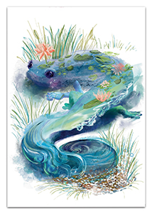 Blahopřání malované akvarel - mlok. Přání je vevnitř zdobeno motivy z titulní strany s textem Všechno nejlepší!. Baleno v bílé obálce. Rozměr 19,5x13,5cm.