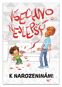 Vtipné blahopřání k narozeninám. Přání je vevnitř zdobeno barevnými motivy z titulní strany. Nemá předepsaný text. Baleno v bílé obálce. Rozměr 19,5x13,5cm.