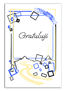 Blahopřání k narozeninám, svátku či osobnímu úspěchu s bílou obálkou. Přání je vevnitř zdobeno motivy z titulní strany. Nemá předepsaný text. Rozměr 19,5x13,5cm.