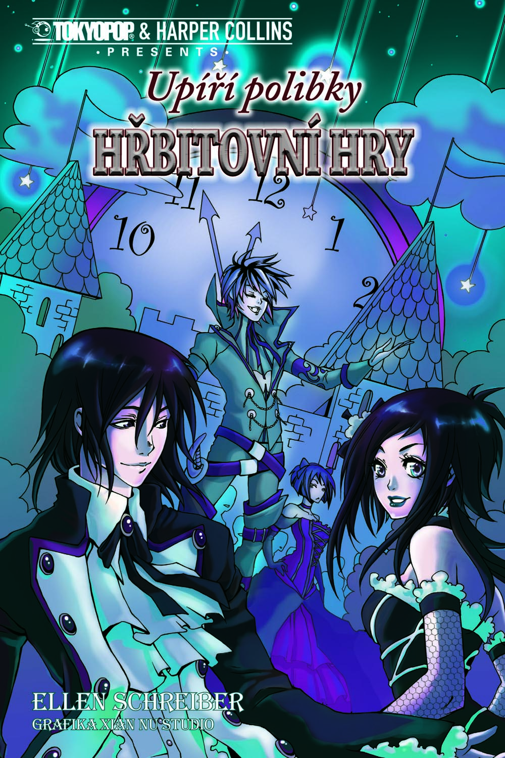 Manga Upíří polibky: Hřbitovní hry z pera Ellen Schreiber volně navazuje na předchozí trilogii Pokrevní příbuzní, která zaznamenala nebývalý čtenářský zájem. Autorka, kterou New York Times označuje jako „bestsellerovou“, napsala také velmi úspěšnou novelu Upíří polibky – obojí vyšlo v našem nakladatelství.